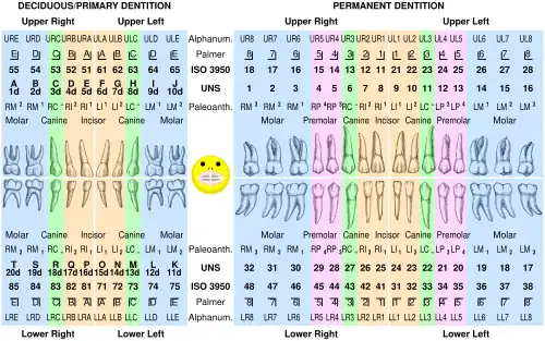 - ↑ ISO 3950:2016 Dentistry — Designation system for teeth and areas of the oral cavity