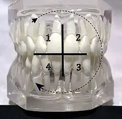 | This is set by going clockwise from the dentist's view. | |