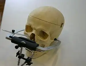 Orbital pointer with clamp – used as a third reference point. The pointer tip is placed in the contact with infraorbital notch which is 43 mm above the incisal edge of the right incisors.[1]