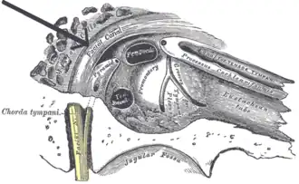 - ↑ "descending part of facial canal". TheFreeDictionary.com. Retrieved 2023-07-29.