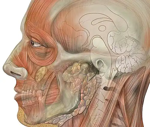- ↑ Freilinger, Gerhard; Gruber, Helmut; Happak, Wolfgang; Pechmann, Ursula (November 1987). "Surgical Anatomy of the Mimic Muscle System and the Facial Nerve: Importance for Reconstructive and Aesthetic Surgery". Plastic and Reconstructive Surgery. 80 (5): 686–690. doi:10.1097/00006534-198711000-00005. PMID 3671560. S2CID 7292843.