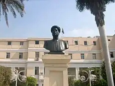 The school of medicine was called el-Demerdash School of Medicine, before establishment of the university. The original El-Demerdash Hospital was established on August 5, 1928, by a generous grant from El-Demerdash Pasha[6] and his wife and daughter. It was built on 12,400 square metres, and had 90 beds and the following sections: quarters for a resident physician and chief nurse, two wards, a surgery unit, out-patient clinic, a laboratory, kitchen, laundry room, isolation ward, an autopsy department and a mosque containing the mausoleum for the El-Demerdash family. The foundation of the hospital was witnessed by many people representing all the society of Egypt and also by the two most powerful figures in the country in that time: Lord George Lloyd (later on George Lloyd, 1st Baron Lloyd), the British high commissioner, and Prime Minister of Egypt Mohamed Mahmoud Pasha. The opening ceremony was covered by Al Ahram, The Times and the Near East journals.[6] It was officially opened on May 5, 1931. A memorial metallic plate and a marble monument were erected to mark this event.