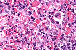 13. 13.0 13.1 Wysocki CA (December 2017). "Comparing hemophagocytic lymphohistiocytosis in pediatric and adult patients". Current Opinion in Allergy and Clinical Immunology. 17 (6): 405–413. doi:10.1097/ACI.0000000000000405. PMID 28957822. S2CID 11439142.