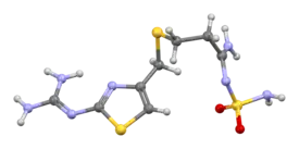 - ↑ US patent 4283408, Yasufumi Hirata, Isao Yanagisawa, Yoshio Ishii, Shinichi Tsukamoto, Noriki Ito, Yasuo Isomura and Masaaki Takeda, "Guanidinothiazole compounds, process for preparation and gastric inhibiting compositions containing them", issued 11 August 1981