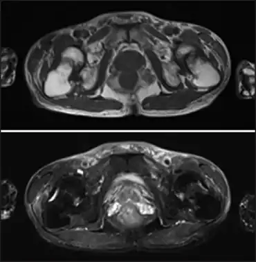 | Fanconi syndrome due to adefovir-image demonstrates low-intensity femoral neck fractures and high-intensity bone edema in both femoral necks | |