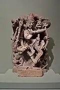 The iconographic representation of some Hindu deities include fangs, to symbolize the ability to hunt and kill. Two examples are fierce warrior goddess Chamunda and god of death Yama in some iconographic representations. Fangs are also common among guardian figures such as Verupaksha in Buddhism art in China and East Asia,[4] as well as Rangda in Balinese Hinduism.[5]