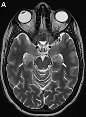 | Differential diagnosis | Viral encephalitis, hypoxic-ischemic brain injury, mitochondrial disorders, autoimmune encephalitis[4][3] |