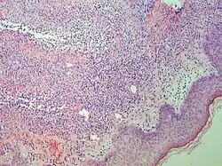 Sweet's syndrome (SS), or acute febrile neutrophilic dermatosis is a skin disease.[2][3] It presents with a sudden onset of fever, tiredness and red-purple painful bumps on the upper body, neck and head.[1]