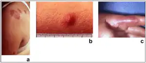 1. 1.0 1.1 1.2 1.3 1.4 Wakelin, Sarah H. (2020). "22. Dermatology". In Feather, Adam; Randall, David; Waterhouse, Mona (eds.). Kumar and Clark's Clinical Medicine (10th ed.). Elsevier. p. 678. ISBN 978-0-7020-7870-5. Archived from the original on 2021-12-11. Retrieved 2021-12-11.