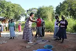 One approach to changing people's behaviors and stopping open defecation is the community-led total sanitation approach. In this process "live demonstrations" of flies moving from food to fresh human feces and back are used. This can "trigger" villagers into action.[8]
