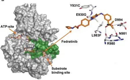 - ↑ "Fedratinib". SPS - Specialist Pharmacy Service. 19 March 2018. Archived from the original on 11 December 2021. Retrieved 10 December 2021.
