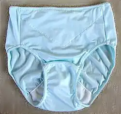 The sanitary belt can be seen as a modern version of the menstrual belt, but more like a girdle. The function of the belt is to hold the pad in place while giving the user greater freedom of motion.[49] In Sweden, the product was introduced in the 1940s and was in use until the 1960s.[50] In the 1970s, the adhesive strip on the underside of the pad was introduced, allowing it to be attached to the underwear and held in place without the use of a girdle, safety pin or belt.[51]