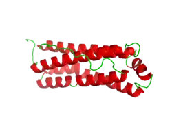 2. PDB: 1r03; Langlois d'Estaintot B, Santambrogio P, Granier T, Gallois B, Chevalier JM, Précigoux G, et al. (July 2004). "Crystal structure and biochemical properties of the human mitochondrial ferritin and its mutant Ser144Ala". Journal of Molecular Biology. 340 (2): 277–293. doi:10.1016/j.jmb.2004.04.036. PMID 15201052.