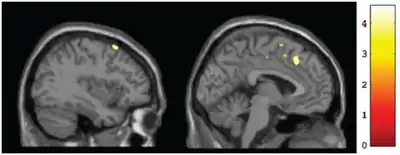 Sagital views of grey matter (left) CT v. (right) Fetal alcohol spectrum disorder (yellow markings depict clusters)