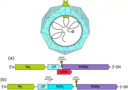 | Fiersviridae virion and genomes of (a) bacteriophage MS2 and (b) bacteriophage Qβ | |