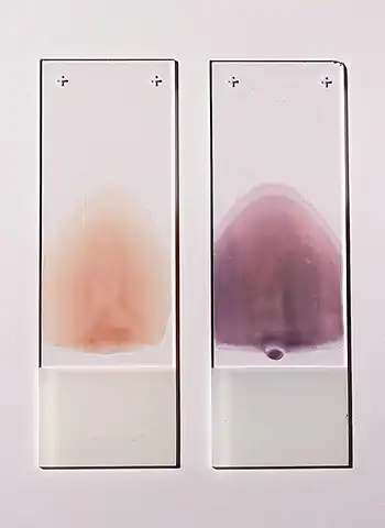 Filariasis is usually diagnosed by identifying microfilariae on Giemsa stained, thin and thick blood film smears, using the "gold standard" known as the finger prick test. The finger prick test draws blood from the capillaries of the finger tip; larger veins can be used for blood extraction, but strict windows of the time of day must be observed. Blood must be drawn at appropriate times, which reflect the feeding activities of the vector insects. Examples are W. bancrofti, whose vector is a mosquito; night is the preferred time for blood collection. Loa loa's vector is the deer fly; daytime collection is preferred. This method of diagnosis is only relevant to microfilariae that use the blood as transport from the lungs to the skin. Some filarial worms, such as M. streptocerca and O. volvulus, produce microfilariae that do not use the blood; they reside in the skin only. For these worms, diagnosis relies upon skin snips and can be carried out at any time.[23][12][2][24]