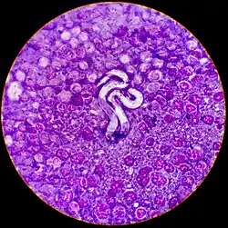 - ↑ Wheeler, Lance. "File:Microfilaria of Dirofilaria immitis (Heartworms) Surrounded by Neoplastic Lymphocytes". Flickr. Retrieved 2 December 2017.