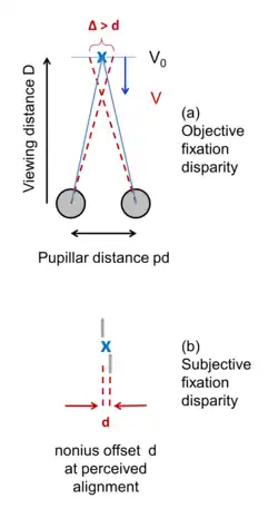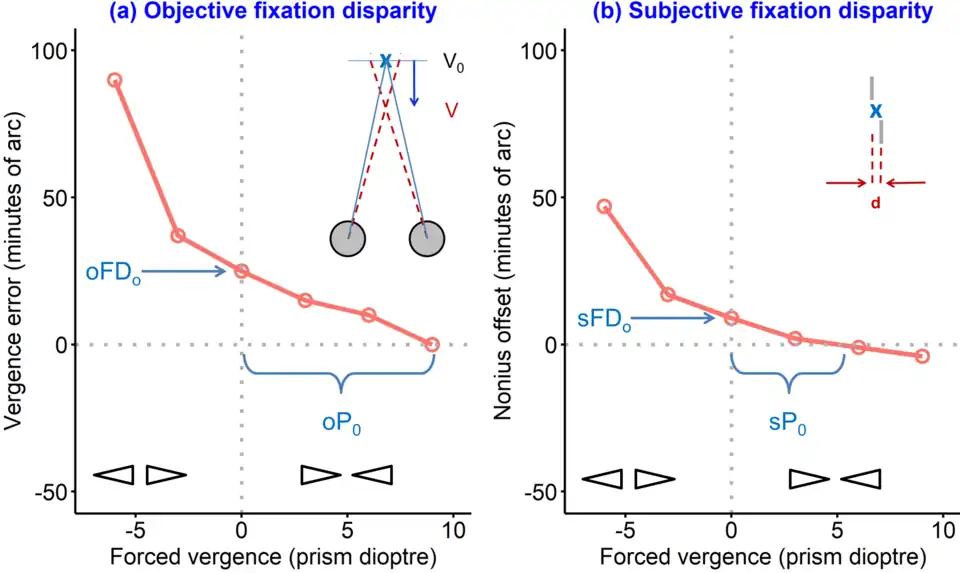 - ↑ Jaschinski, Wolfgang (2018). "Individual objective versus subjective fixation disparity as a function of forced vergence". PLOS ONE. 13 (7) e0199958. Bibcode:2018PLoSO..1399958J. doi:10.1371/journal.pone.0199958. ISSN 1932-6203. PMC 6035046. PMID 29980146.