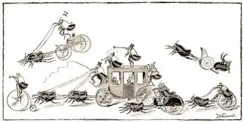 Flea circuses provided entertainment to nineteenth century audiences. These circuses, extremely popular in Europe from 1830 onwards, featured fleas dressed as humans or towing miniature carts, chariots, rollers or cannon. These devices were originally made by watchmakers or jewellers to show off their skill at miniaturization. A ringmaster called a "professor" accompanied their performance with a rapid circus patter.[44][45]