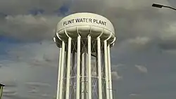 In April 2014, during a financial crisis, state-appointed emergency manager Darnell Earley changed Flint's water source from the Detroit Water and Sewerage Department (sourced from Lake Huron and the Detroit River) to the Flint River.[7] Residents complained about the taste, smell, and appearance of the water. Officials failed to apply corrosion inhibitors to the water, which resulted in lead from aging pipes leaching into the water supply, exposing around 100,000 residents to elevated lead levels.[8] A pair of scientific studies confirmed that lead contamination was present in the water supply.[9][10] The city switched back to the Detroit water system on October 16, 2015.[11] It later signed a 30-year contract with the new Great Lakes Water Authority (GLWA) on November 22, 2017.[12]