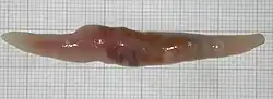 Trematodes are flattened oval or worm-like animals, usually no more than a few centimeters in length, although species as small as 1 millimetre (0.039 in) are known. Their most distinctive external feature is the presence of two suckers, one close to the mouth, and the other on the underside of the animal.[16]