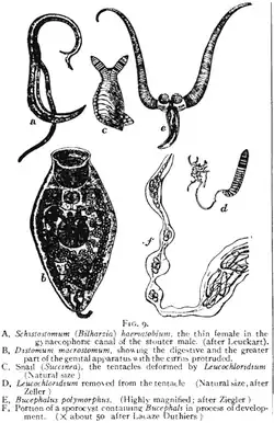 Various trematodes, from 1911 Encyclopædia Britannica