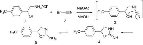 2-amino-1-[4-(trifluoromethyl)phenyl]ethanol [776-02-3] (1) cyanogen bromide [506-68-3] (2)