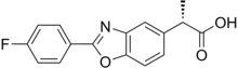 - ↑ Dunwell DW, Evans D, Hicks TA (January 1975). "2-aryl-5-benzoxazolealkanoic acid derivatives with notable antiinflammatory activity". Journal of Medicinal Chemistry. 18 (1): 53–58. doi:10.1021/jm00235a012. PMID 1109576.