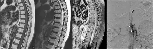 - ↑ Krishnan, Prasad; Banerjee, TapasKumar; Saha, Manash (2013). "Congestive myelopathy (Foix-Alajouanine Syndrome) due to intradural arteriovenous fistula of the filum terminale fed by anterior spinal artery: Case report and review of literature". Annals of Indian Academy of Neurology. 16 (3): 432. doi:10.4103/0972-2327.116931.