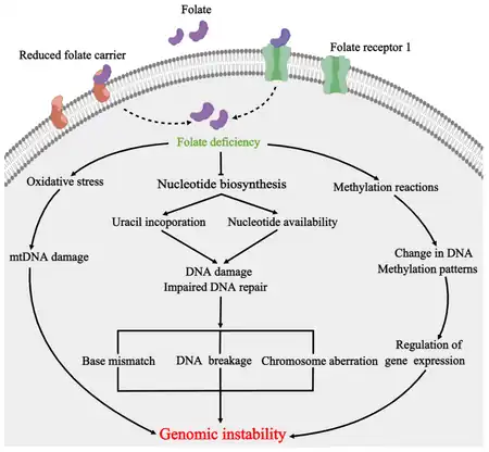 - ↑ Wang, Xiuwei; Yu, Jialu; Wang, Jianhua (22 January 2023). "Neural Tube Defects and Folate Deficiency: Is DNA Repair Defective?". International Journal of Molecular Sciences. 24 (3): 2220. doi:10.3390/ijms24032220. ISSN 1422-0067.