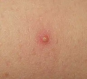 | Symptoms | Tender small pustule or red bump, itch[1][2] |