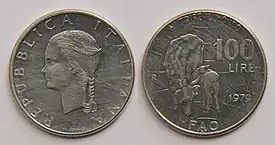 | Coin minted by Italy in the 1970s to celebrate and promote the Food and Agriculture Organization. | |