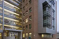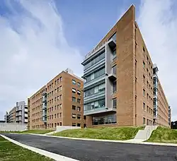 Since 1990, the FDA has had employees and facilities on 130 acres (53 hectares) of the White Oak Federal Research Center in the White Oak area of Silver Spring, Maryland.[6][11] In 2001, the General Services Administration (GSA) began new construction on the campus to consolidate the FDA's 25 existing operations in the Washington metropolitan area, its headquarters in Rockville, and several fragmented office buildings. The first building, the Life Sciences Laboratory, was dedicated and opened with 104 employees in December 2003. As of December 2018, the FDA campus has a population of 10,987 employees housed in approximately 3,800,000 square feet (350,000 square metres) of space, divided into ten offices and four laboratory buildings. The campus houses the Office of the Commissioner (OC), the Office of Regulatory Affairs (ORA), the Center for Drug Evaluation and Research (CDER), the Center for Devices and Radiological Health (CDRH), the Center for Biologics Evaluation and Research (CBER) and offices for the Center for Veterinary Medicine (CVM).[6]