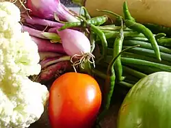 - Vegetables, sometimes categorized with fruit and occasionally inclusive of legumes, is typically a large category second only to grains, or sometimes equal or superior to grains, in nutrition guides.[4][5][6] Examples include spinach, carrots, onions, and broccoli.