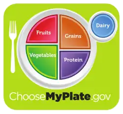 MyPlate is the current nutrition guide published by the United States Department of Agriculture, depicting a place setting with a plate and glass divided into five food groups. It replaced the USDA's MyPyramid guide on June 2, 2011, concluding 19 years of USDA food pyramid diagrams.