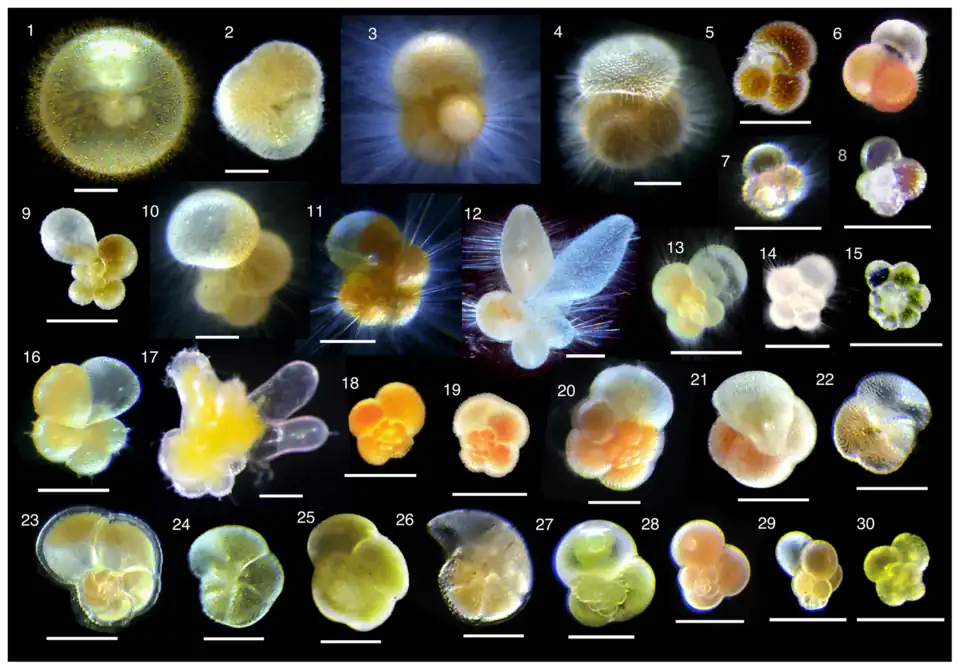 - ↑ Takagi, H., Kimoto, K., Fujiki, T., Saito, H., Schmidt, C., Kucera, M. and Moriya, K. (2019) "Characterizing photosymbiosis in modern planktonic foraminifera". Biogeosciences, 16(17). doi:10.5194/bg-16-3377-2019.