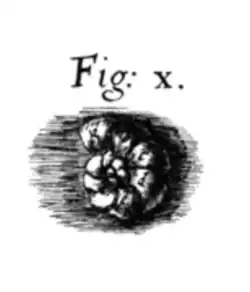 Antonie van Leeuwenhoek described and illustrated foraminiferal tests in 1700, describing them as minute cockles; his illustration is recognizable as being Elphidium.[17] Early workers classified foraminifera within the genus Nautilus, noting their similarity to certain cephalopods. It was recognised by Lorenz Spengler in 1781 that foraminifera had holes in the septa, which would eventually grant the group its name.[18] Spengler also noted that the septa of foraminifera arced the opposite way from those of nautili and that they lacked a nerve tube.[19]