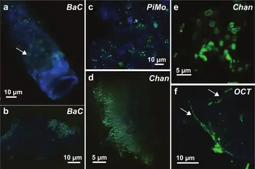 - ↑ Carere CR, Hards K, Wigley K, Carman L, Houghton KM, Cook GM, Stott MB (2021). "Growth on Formic Acid Is Dependent on Intracellular pH Homeostasis for the Thermoacidophilic Methanotroph Methylacidiphilum sp. RTK17.1". Frontiers in Microbiology. 12 651744. doi:10.3389/fmicb.2021.651744. PMC 8024496. PMID 33841379.