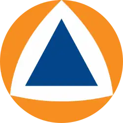 Its logo, a blue triangle on white and orange ground, comes from the international distinctive sign of civil defence,[1] which is a protective sign under the protection of the four Geneva Conventions of 1949.