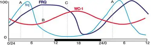 - ↑ Crosthwaite SK, Loros JJ, Dunlap JC (1995). "Light-induced resetting of a circadian clock is mediated by a rapid increase in frequency transcript". Cell. 81 (7): 1003–12. doi:10.1016/S0092-8674(05)80005-4. PMID 7600569.