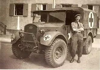 It was refounded by a committee of former members at the start of World War II in September 1939 with the establishment of a training camp at Manor Farm, Bristol Road, Northfield, Birmingham. More than 1,300 members were trained and went on to serve as ambulance drivers and medical orderlies in London during the Blitz, as well as overseas in Finland, Norway and Sweden (1940), the Middle East (1940–1943), Greece (1941, 1944–1946), China and Syria (1941–1946), India and Ethiopia (1942–1945), Italy (1943–1946), France, Belgium, Netherlands, Yugoslavia and Germany (1944–1946) and Austria (1945–1946). Its first female member was Angela Sinclair-Loutit, who joined in 1940 after her studies at Somerville College, Oxford were interrupted.[8][9]