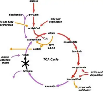 {{cite journal}}: CS1 maint: unflagged free DOI (link) - ↑ Kerrigan, John F.; Aleck, Kirk A.; Tarby, Theodore J.; Bird, C. Roger; Heidenreich, Randall A. (May 2000) [3 May 2001]. "Fumaric aciduria: clinical and imaging features". Ann. Neurol. 47 (5): 583–8. doi:10.1002/1531-8249(200005)47:5<583::AID-ANA5>3.0.CO;2-Y. PMID 10805328. S2CID 10448322.