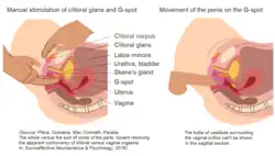 - ↑ Pfaus, J. G.; Quintana, G. R.; Mac Cionnaith, C.; Parada, M. (2016). "The whole versus the sum of some of the parts: Toward resolving the apparent controversy of clitoral versus vaginal orgasms". Socioaffective Neuroscience & Psychology. 6. Figure 4 b. doi:10.3402/snp.v6.32578. PMC 5084726. PMID 27791968.