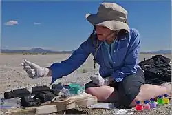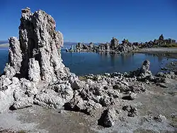 The GFAJ-1 bacterium was discovered by geomicrobiologist Felisa Wolfe-Simon, a NASA astrobiology fellow in residence at the US Geological Survey in Menlo Park, California.[10] GFAJ stands for "Give Felisa a Job".[11] The organism was isolated and cultured beginning in 2009 from samples she and her colleagues collected from sediments at the bottom of Mono Lake, California, U.S.A.[12] Mono Lake is hypersaline (about 90 grams/liter) and highly alkaline (pH 9.8).[13] It also has one of the highest natural concentrations of arsenic in the world (200 μM).[1] The discovery was widely publicized on 2 December 2010.[2]