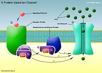 - ↑ Brown AM, Birnbaumer L (March 1988). "Direct G protein gating of ion channels". The American Journal of Physiology. 254 (3 Pt 2): H401-10. doi:10.1152/ajpheart.1988.254.3.H401. PMID 2450476.