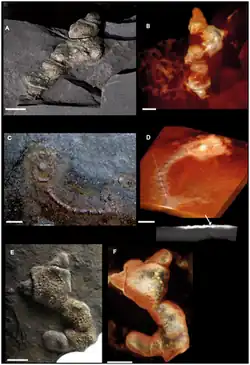 The Francevillian biota (Also referred to as Gabon macrofossils, Gabonionta or Francevillian group fossils) are a collection of 2.1-billion-year-old Palaeoproterozoic macroscopic structures, controversially suggested to be fossils, known from the Francevillian B Formation in Gabon, a black shale province notable for its lack of any noticeable metamorphism.[1] The structures have been postulated by some authors to be evidence of the earliest form of multicellular life, and of eukaryotes.[1][2] They were discovered by an international team led by Moroccan geologist Abderrazak El Albani, of the University of Poitiers, France. While they have yet to be assigned to a formal taxonomic position, they have been informally and collectively referred to as the "Gabonionta", including by the Natural History Museum Vienna in 2014.[3] The status of the structures as fossils has been questioned, and they remain a subject of debate.[4][5]