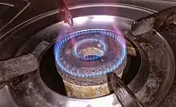 Gas stoves are an indoor common fossil-fuel appliance that contributes to significant levels of indoor air pollution,[1][2][3][4] but good ventilation reduces the health risk.[5] They also expose users to pollutants, such as nitrogen dioxide, which can trigger respiratory diseases,[6] and have shown an increase in the rates of asthma in children.[3][7][8][9] In 2023, Stanford researchers found combustion from gas stoves can raise indoor levels of benzene, a potent carcinogen linked to a higher risk of blood cell cancers,[10] to more than that found in secondhand tobacco smoke.[11] The health harms of gas stoves have prompted efforts to phase them out and use alternatives, such as induction stoves.[12]