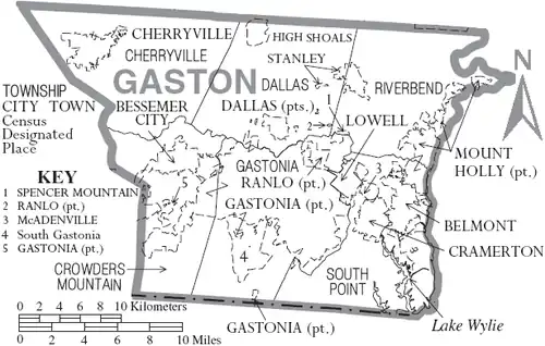 - ↑ Geography Division (January 8, 2021). 2020 Census - School District Reference Map: Gaston County, NC (PDF) (Map). U.S. Census Bureau. Retrieved October 4, 2025. - Text list