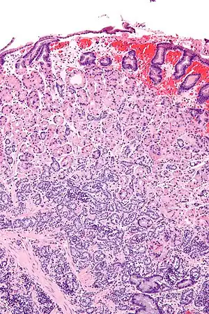| Micrograph of a neuroendocrine tumour of the stomach. H&E stain. | |