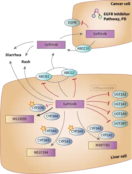 - ↑ "Gefitinib Pathway, Pharmacokinetics". PharmGKB.